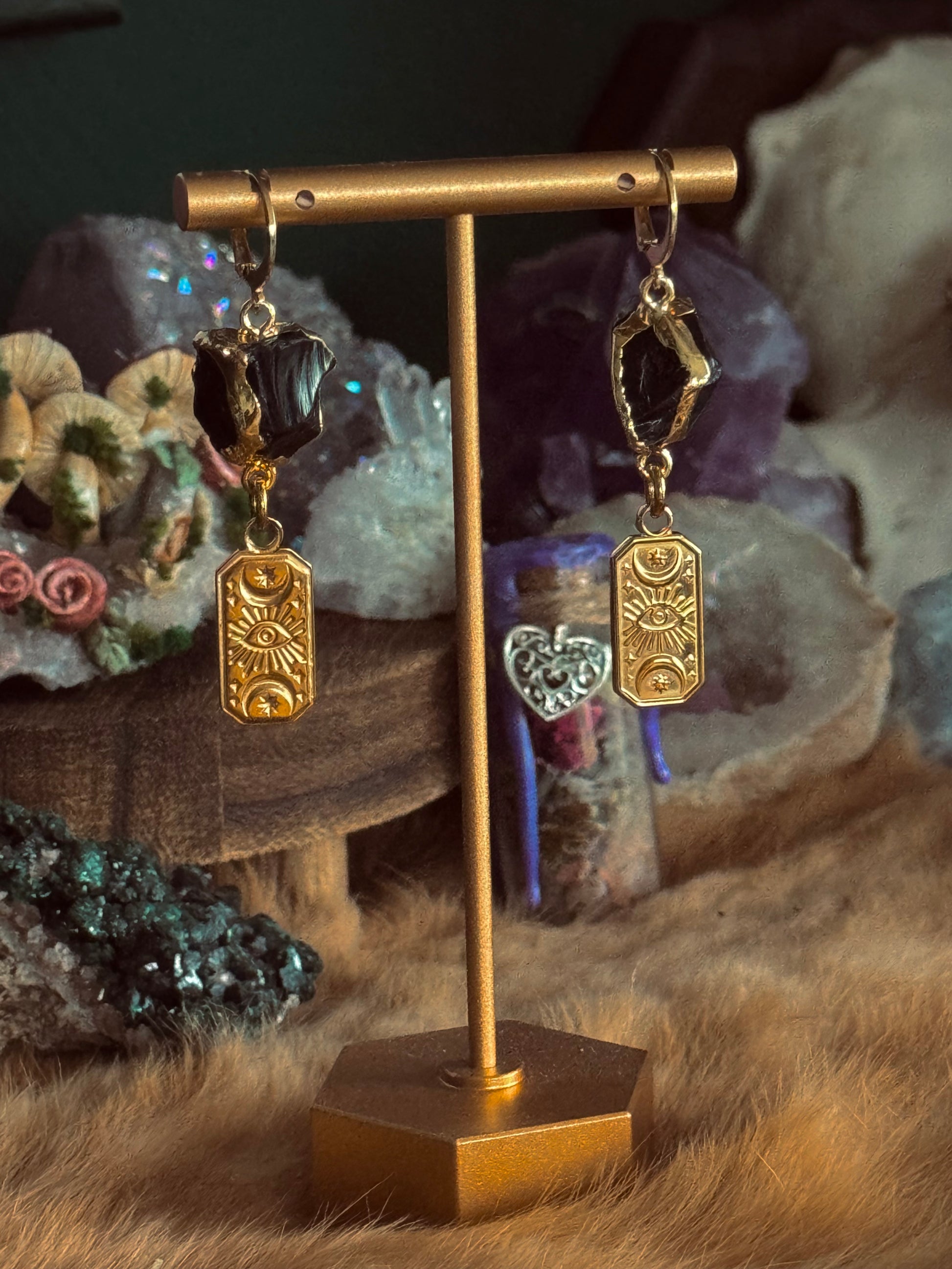 Ein Paar Ohrringe, das sich perfekt für magische Abende, Rituale oder als starkes Alltags-Statement eignet.