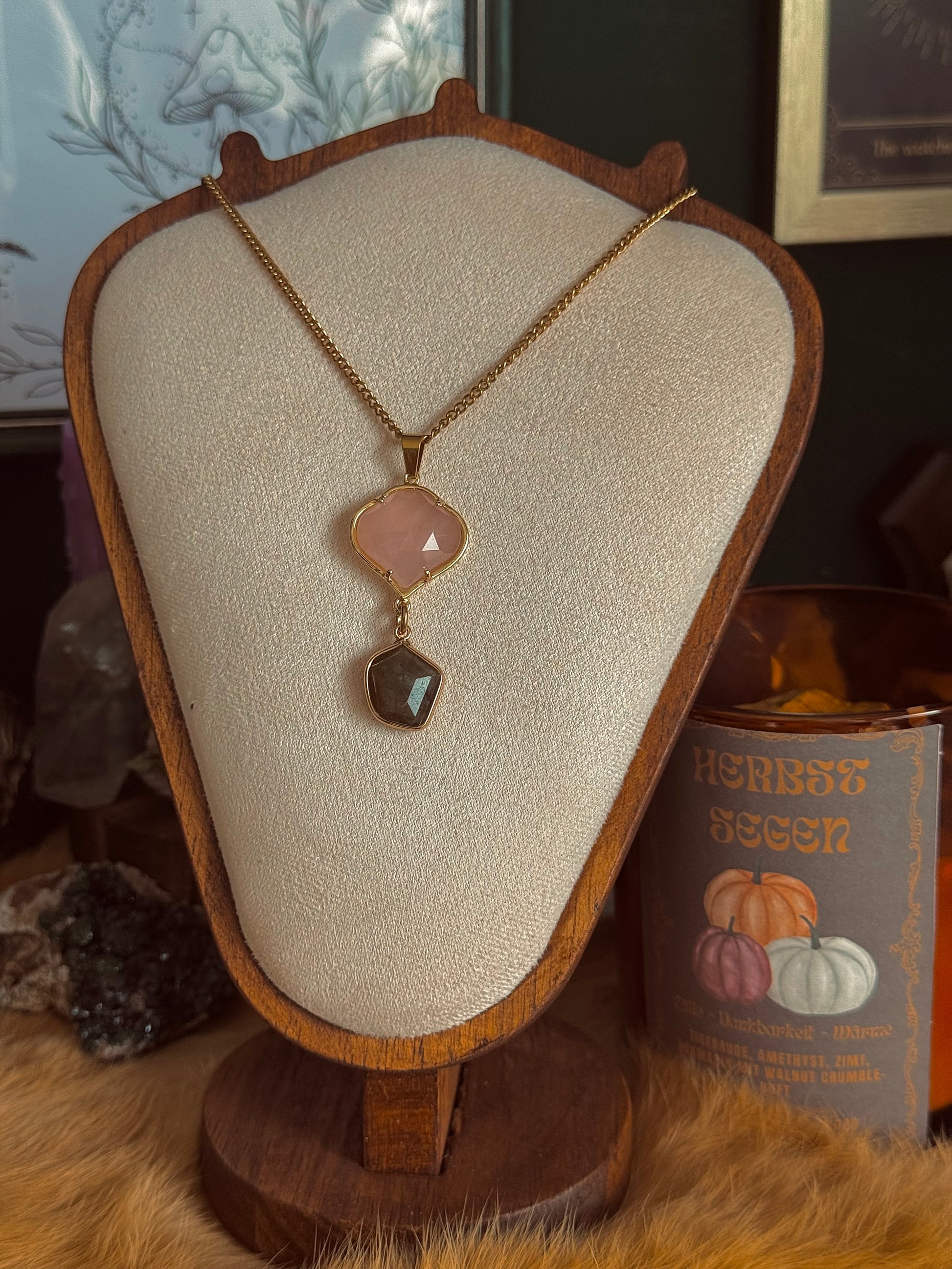 ✨ Material: Rosenquarz, Labradorit, Messing, Edelstahl (golden)