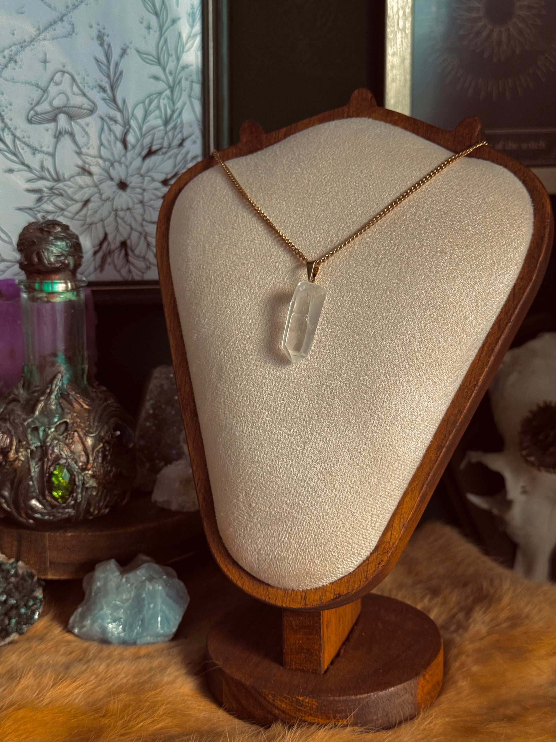 Ein zeitloses Schmuckstück: Diese Kette trägt eine natürliche Bergkristallspitze, die durch ihre klare Form ein wahres Highlight darstellt. Jeder Kristall ist ein Unikat – mal mit feinen Einschlüssen, mal glasklar.