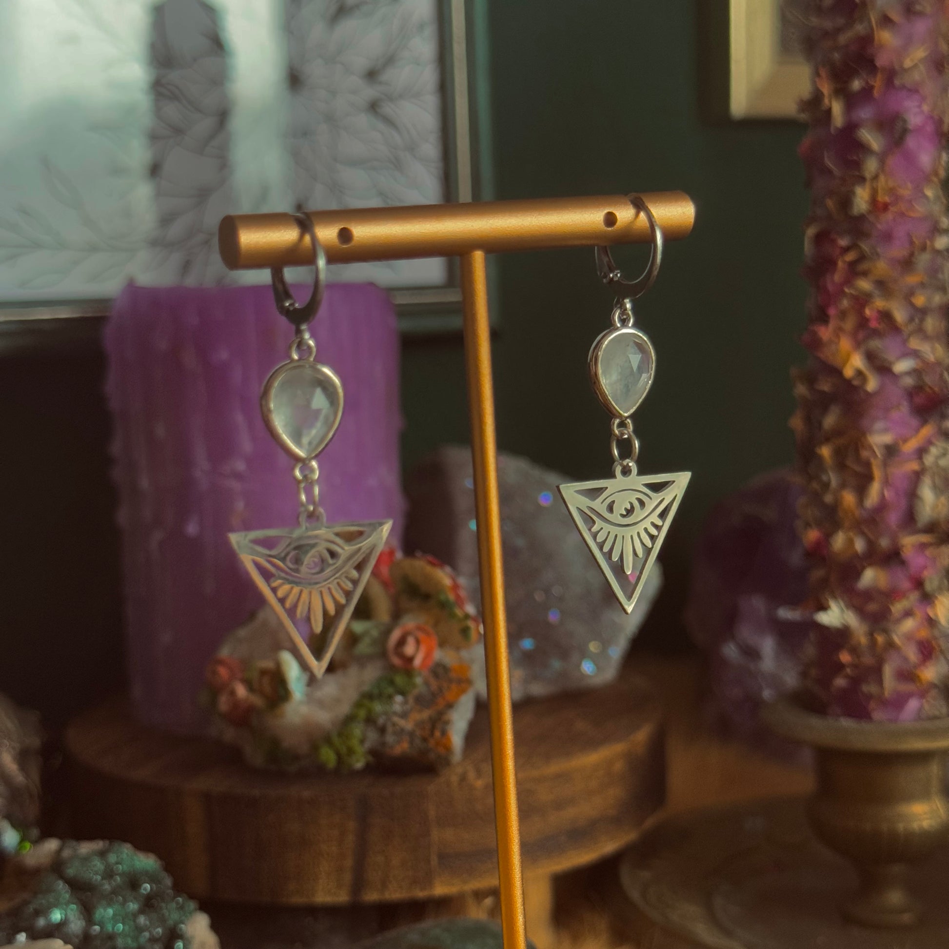 Diese Ohrringe vereinen klare, moderne Linien mit einem Hauch okkulter Symbolik.