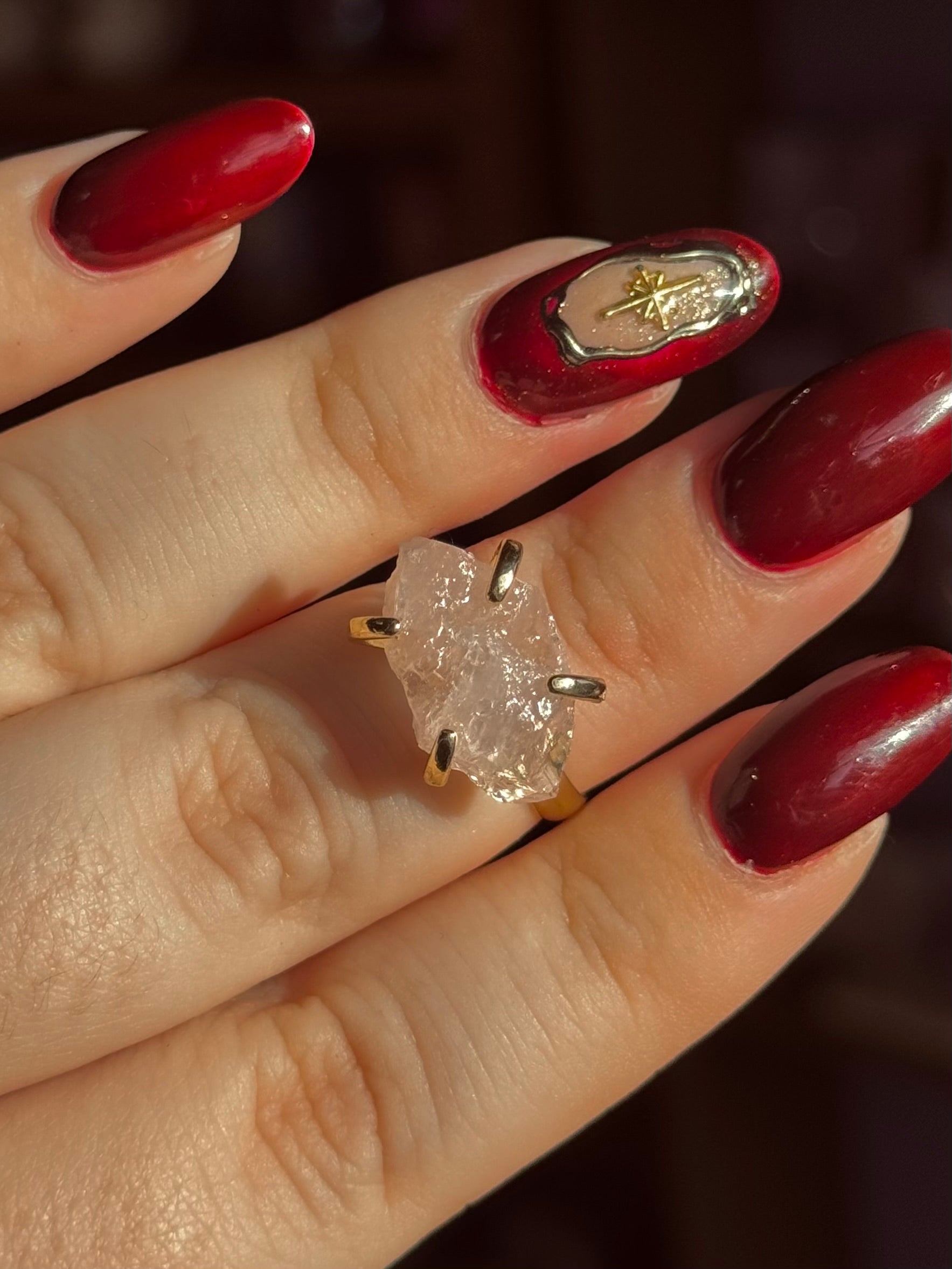 Rosenquarz kann symbolisch für Selbstfürsorge, Sanftheit und Herzenswärme stehen. Als Ring getragen erinnert er daran, sich selbst mit Achtsamkeit zu begegnen und dem Alltag mit einem offenen, ruhigen Gefühl zu begegnen.