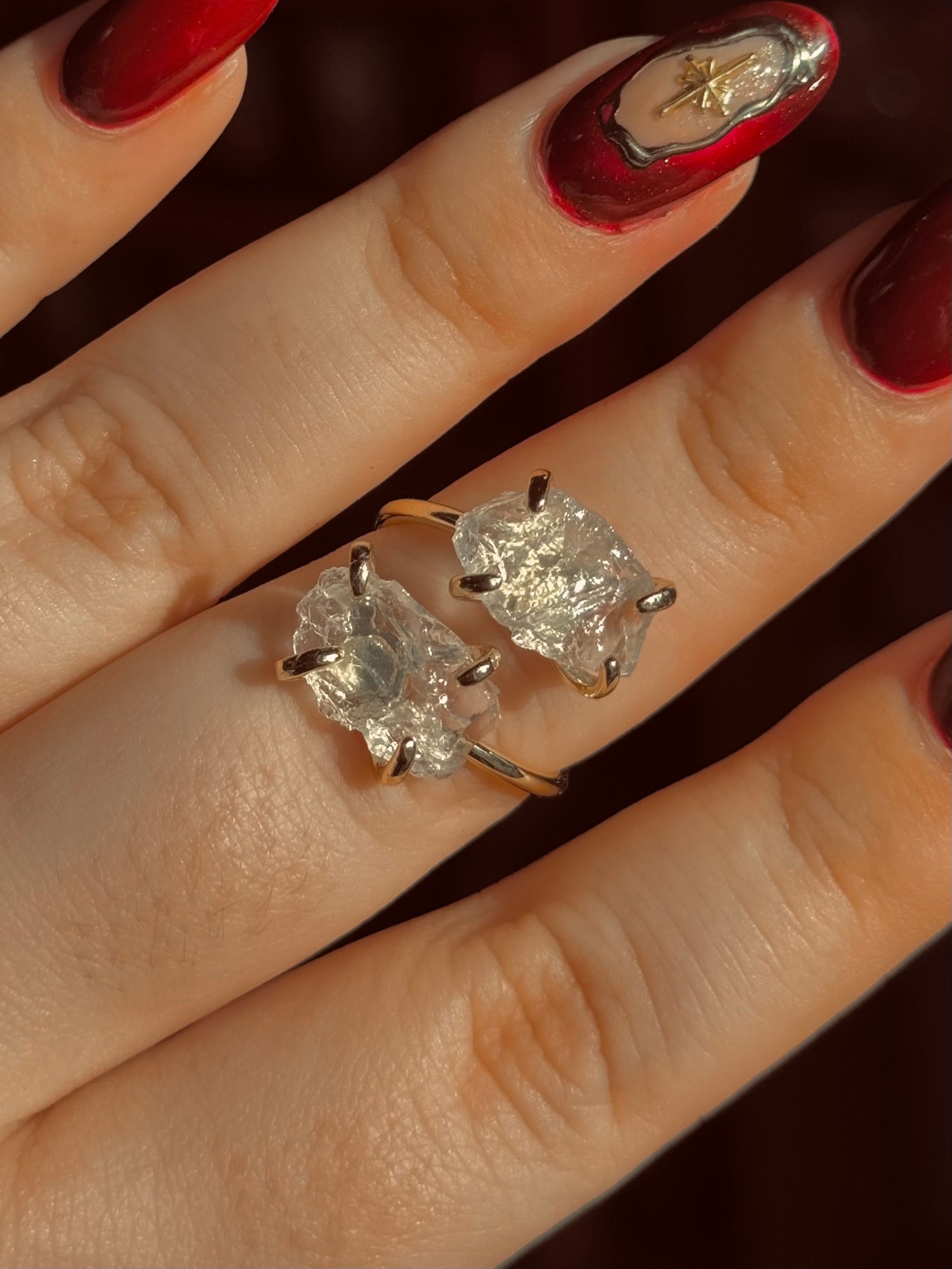 Quarzkristall kann symbolisch für Klarheit, Fokus und Ausrichtung stehen. Als Ring getragen erinnert er daran, den eigenen Weg bewusst wahrzunehmen und bei sich zu bleiben – ruhig, präsent und ohne Überladung.